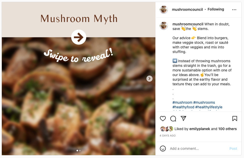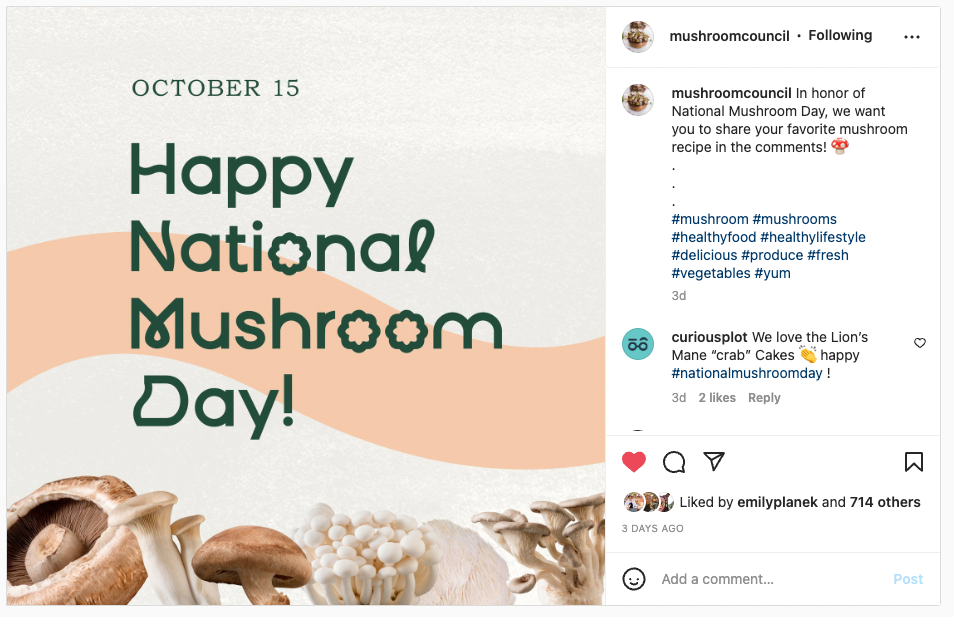 This Week’s top social posts included a link to a mushroom pot-pie recipe, as well as a post sharing a mushroom gnocchi recipe.