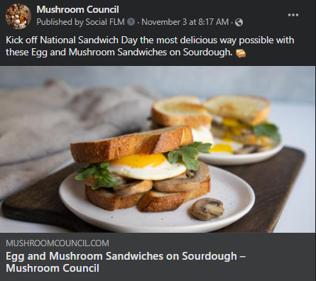 The top posts this week included two recipes (an Egg and Mushroom Sandwich and a Garlic Mashed Potato Bowl with Bacon and Roasted Mushrooms) shares.