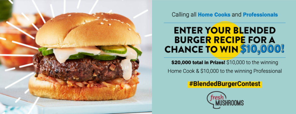 Create your original spin on a blended burger using at least 25% chopped cultivated* mushrooms in the patty for a chance to win $10,000!