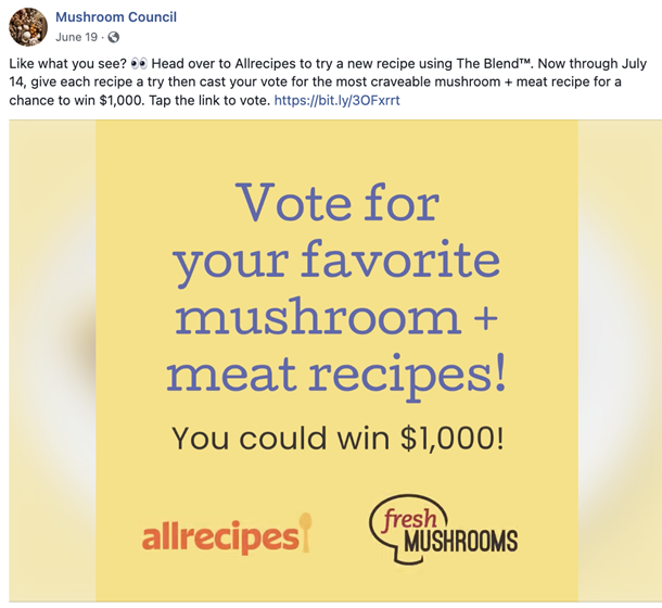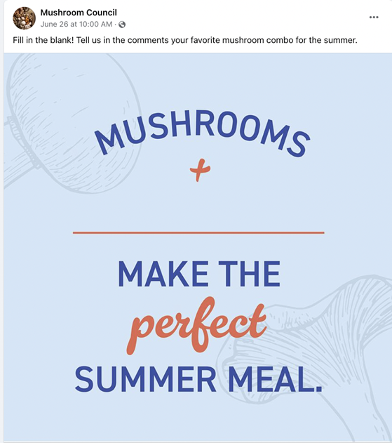 Top posts this week included a call to action to “Vote” in the Allrecipes Allstars competition, followed by a fill-in-the-blank post (mushrooms + _ make the perfect summer meal). More than comments came in, ranging from “ANYTHING” to “Mushrooms plus Mushrooms.”