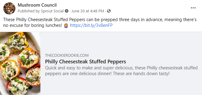 A blogger recipe for Garlic Butter Mushrooms was the most popular post this week. The second most popular post was also for a blogger recipe for Philly Cheesesteak Stuffed Peppers, which include sliced button mushrooms.