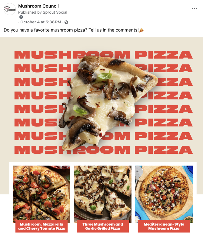 TThis week’s top post features an interactive post asking followers to comment their favorite mushroom pizza.