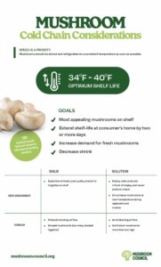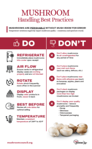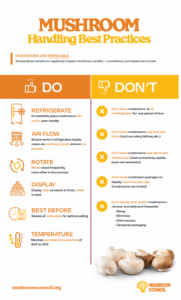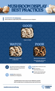 Utilize these best practice posters to educate staff and maximize your mushrooms. Materials are available as PDFs as well as print-ready files for printing and hanging in backrooms.