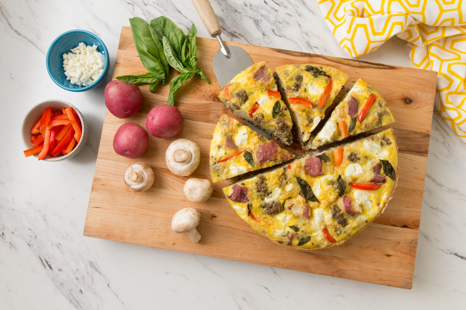 This frittata features hearty red potatoes, savory sausage blended with meaty mushrooms, and tangy goat cheese. Serve for brunch alongside fresh fruit or enjoy for dinner with a side salad.