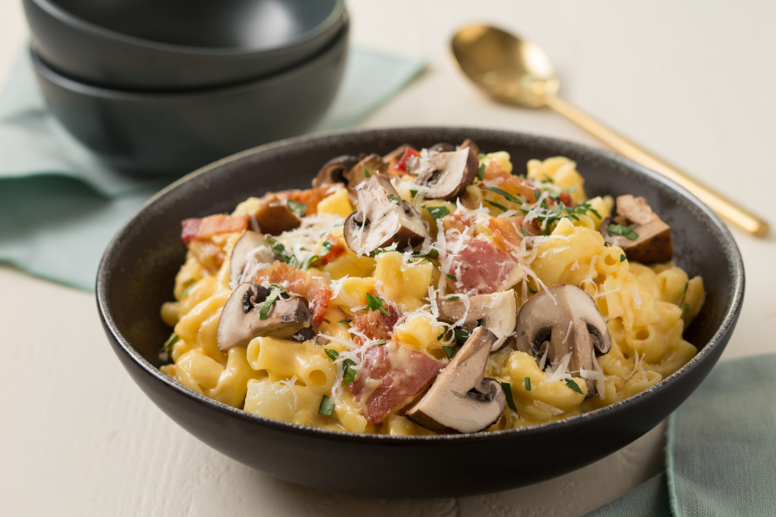 The ultimate comfort food, this creamy mac & cheese is taken to the next level with crispy bacon, mushrooms and tasty red potatoes. Perfect for a chilly weeknight in or weekend gameday!