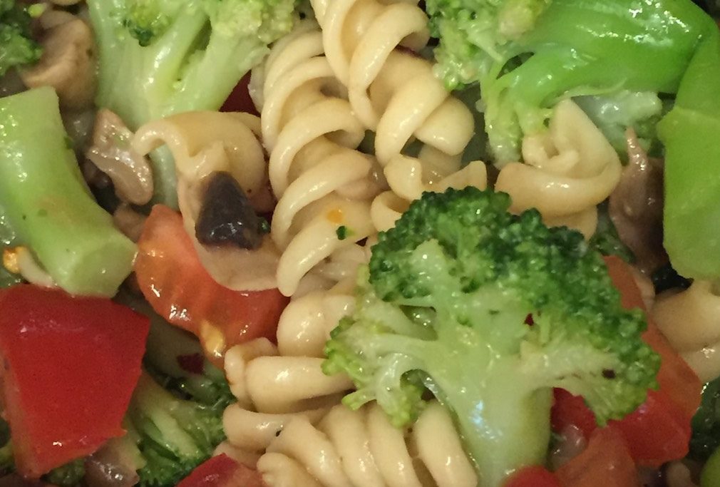 Utilize your USDA Foods in this easy pasta salad recipe that can be a great side for countless entrees. This pasta salad is full of flavor and nutrition with seasoned mushrooms, broccoli, and tomatoes mixed in with a whole wheat pasta. Use both fresh and frozen vegetables to help save on prep time and food cost.