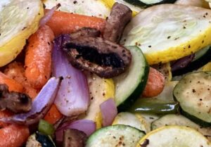 A student-favorite recipe is roasted seasoned mushrooms with zucchini, squash, baby carrots, and onions. This is a 2024 K12 Recipe Contest winner!