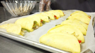 We make breakfast a snap by utilizing a pre-made egg omelet and stuffing it with fresh veggies and cheese for a one-of-a-kind dish students will love.